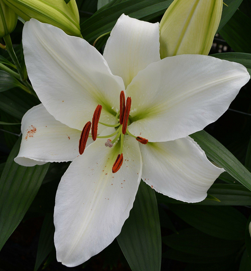 Погрузитесь в мир восточной лилии сорта asterian, которая поразит вас своей красотой и изысканностью. Эти удивительные растения достигают высоты до 120-130 см и радуют глаз белоснежными цветками с насыщенно-оранжевыми пыльниками. Лепестки волнистые по краям, создавая неповторимый вид. Цветение лилий asterian приходится на июль и август, наполняя сад невероятным ароматом и яркими красками.