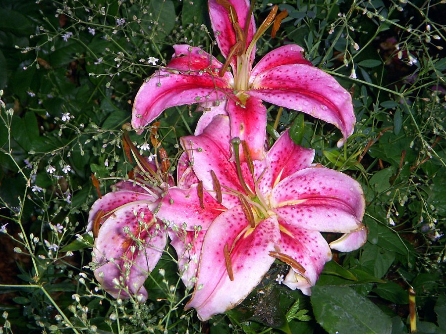 Саженцы и рассада Лилия восточная Барракуда (Lilium oriental Barracuda) украсят сад цветами во второй половине июня, июле. Высота стебля до 90 см, зелень спокойная матовая. Растение отличается необычной формой и окраской цветка. Очень крупные, до 22 см в диаметре, цветки имеют всего 6 лепестков. Форма лепестка широкая у основания с зауженными концами, края волнистые, слегка загнутые от центра. Цвет насыщенный яркий пурпурно-розовый с желтовато-белой окантовкой края. Весь лепесток покрыт темно-красными точками крапа и до середины мелкими выростами-сосочками совпадающими по цвету.