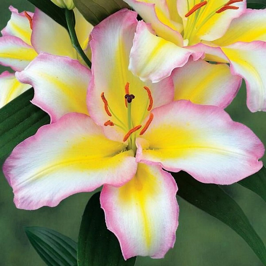 Лилия восточная "Капитан Триколор" - это великолепное растение, которое поразит вас своей красотой и изысканностью. Ее крупные белые цветы с желтыми полосами в центре и розово-сиреневой каймой на волнистых лепестках привлекут внимание всех окружающих. Высота растения достигает 120 см, а размер цветка составляет 18-20 см, что делает его по-настоящему величественным.