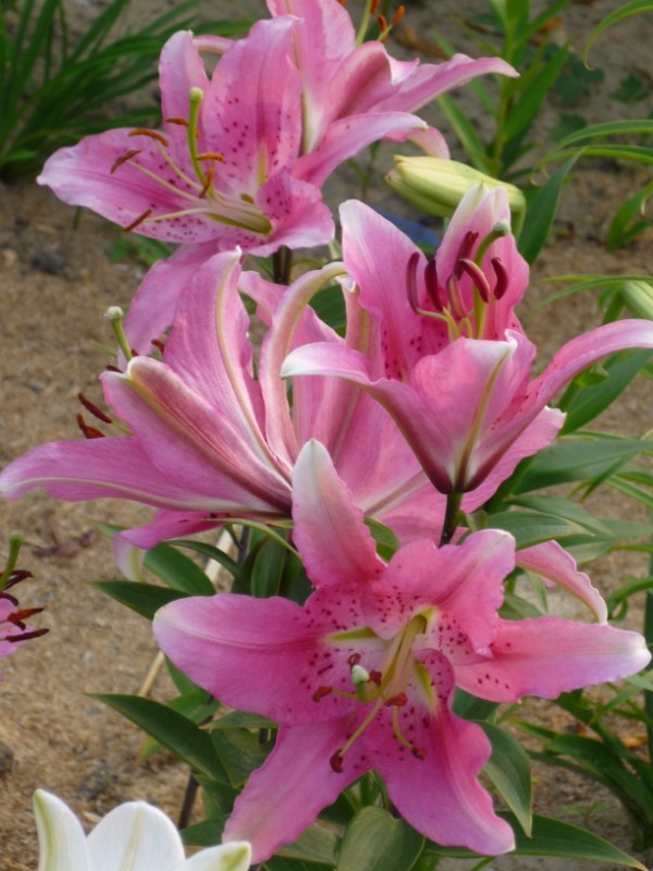 • Окраска цветка : крупный, розовый со светлым центром, белесыми кончиками и красно-розовыми продольными мазками, в центре редкий крап
