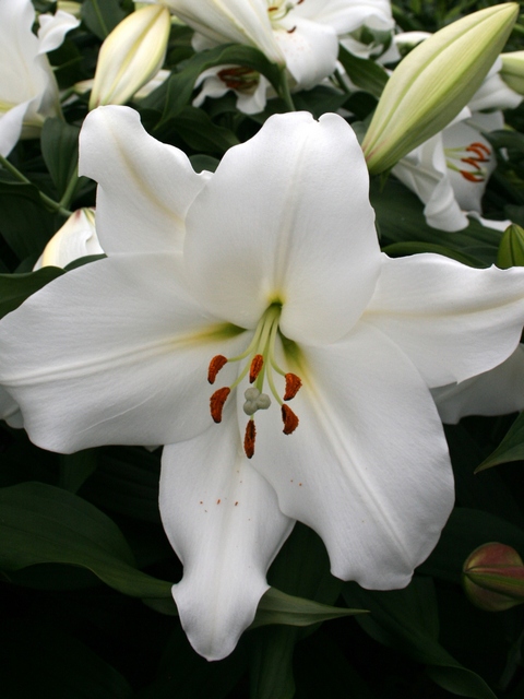 Лилия восточная "Юниверс" - это великолепное растение, которое поразит вас своей красотой и изысканностью. Ее стебель достигает высоты до 110 см, а цветки белого цвета с зеленцой у основания радуют глаз размером до 20 см. Листья лилии имеют форму, напоминающую сердце, что придает растению особый шарм.