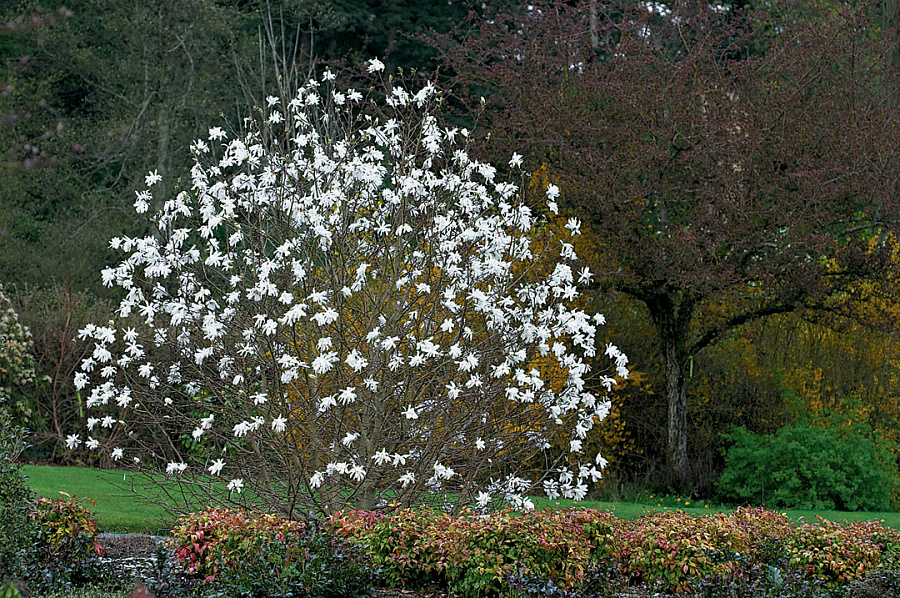 Саженцы магнолии звездчатой Вотерлили (Magnolia stellata, Waterlily) высаживают на солнечных местах садов. Красивоцветущее деревце станет украшением открытой территории. Высота взрослого растения — 3 метра, форма закругленная, компактная. Цветет до появления листьев в первой половине апреля. Ценится за красивые белоснежные цветы, достигающие 15 сантиметров в диаметре, отличающиеся оригинальной формой — имеют множественные удлиненные лепестки. Благодаря этому цветок приобретает слегка растрепанную форму. Для правильного развития культуры выбирают плодородную влажную почву с небольшим добавлением гумуса.