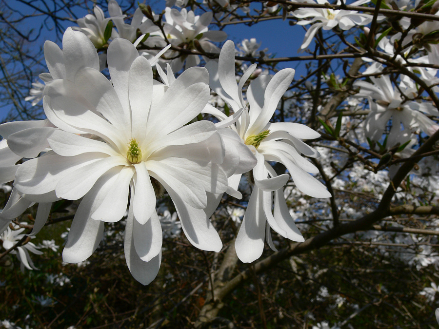 Саженцы магнолии Звездчатой вырастают компактные декоративные деревья, которые каждую весну покрываются душистыми цветами. Высота взрослого дерева не превышает 3м. Цветки имеют формы бокалов из длинных тонких лепестков, когда распускаются напоминают звезду. Цветение начинается в апреле и длится 3 недели. Листья крупномера темно-зеленые, с плотной глянцевой поверхностью. Форма кроны у магнолии Звездчатой пышная и раскидистая. Достоинства: