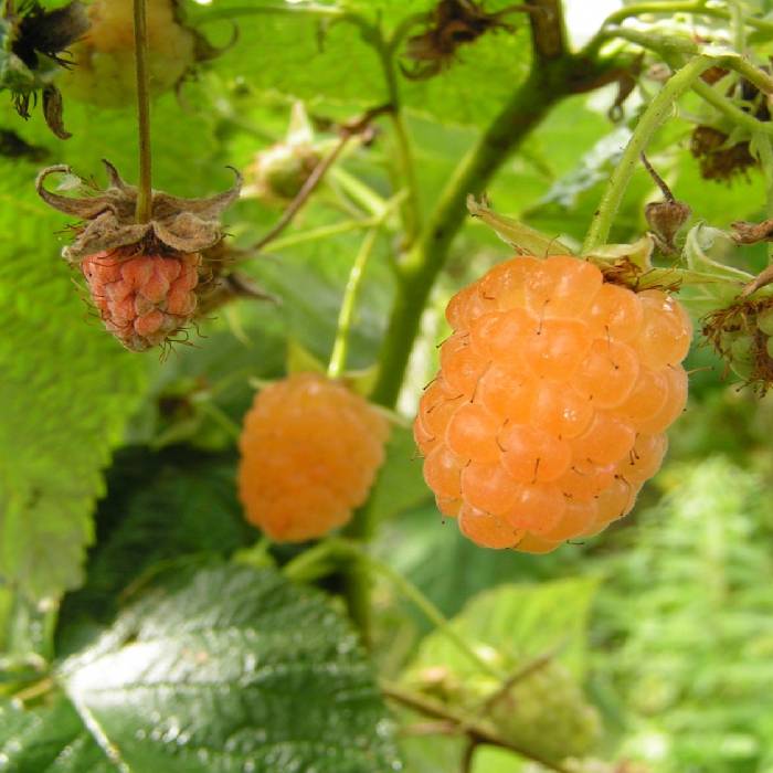 Саженцы малины ремонтантной Золотые купола являются результатом трудов российских селекционеров. Взрослое растение имеет вид: 1. Среднерослый кустарник, высота которого не превышает 1,5 м. Побегов, как правило, пять или шесть. В первый год они светло-зеленые и покрыты восковым налетом; 2. Листья зеленого цвета, среднего размера, морщинистые; 3. Сочные крупные ягоды имеют насыщенно-желтый цвет. Форма коническая. Обладают едва уловимым ароматом. 4. В сезон урожай собирают дважды. Первый раз в конце июня или начале июля, а затем - начиная с августа. Саженцы малины Золотые купола весьма устойчивы к заболеваниям и поражению вредителями. В конце сезона рекомендуется проводить обрезку крупномера до уровня земли.