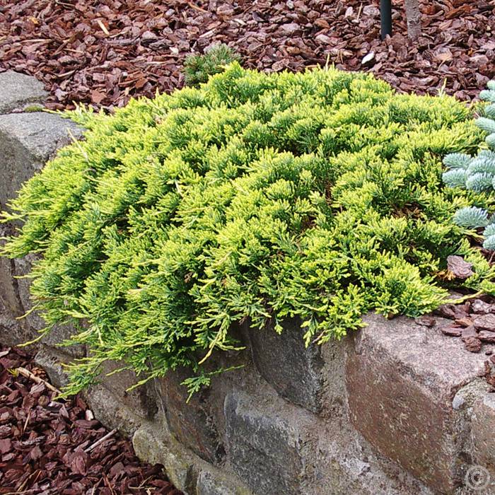 Саженцы можжевельника горизонтального — создадут отличный дизайн сада в любое время года. Можжевельник имеет характерную ему распростёртую форму, прижатую к земле, максимальной высоты достигает около метра. Используется для украшения внутренних дворов, в декоративном озеленении парков, скверов. Растёт очень медленно – всего по 0,5 см в год. Растения тяжело переживают пересадку, поэтому к посадке крупномеров нужно тщательно подготовить почву и соблюдать технологию. Растение хорошо переносит перепады температур, но требует регулярной поливки. Для придания формы дизайнеры нередко стригут кусты.