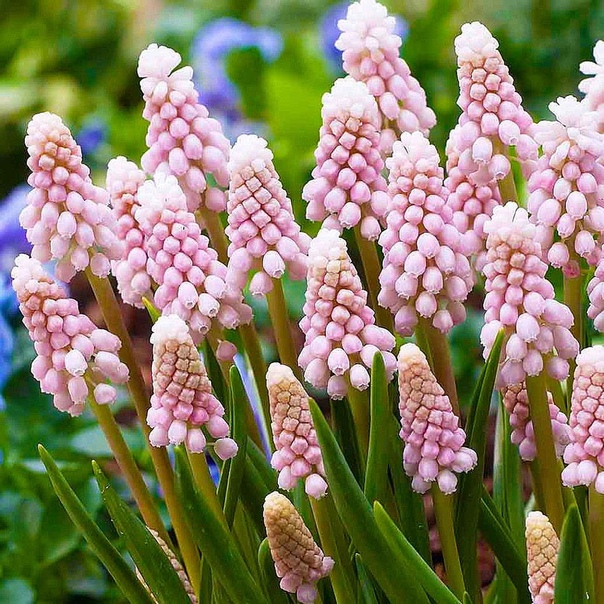 Луковицы мускари обыкновенного Пинк Санрайс (Muscari, Pink Sunrise) высаживают во влажную почву. Высота взрослого растения 15-20 сантиметров. Сорт ценится за раннее колокольчатое цветение и неприхотливость. Предпочитает периодический полив, но не переносит застоя влаги. Цветет в течение месяца с первых дней мая. Используется в одиночных и групповых посадках. Культура нетребовательна к местоположению, хорошо растет на солнце и в слегка затененных участках цветника. Для декоративности отцветшие соцветия удаляют или оставляют для образования семян.