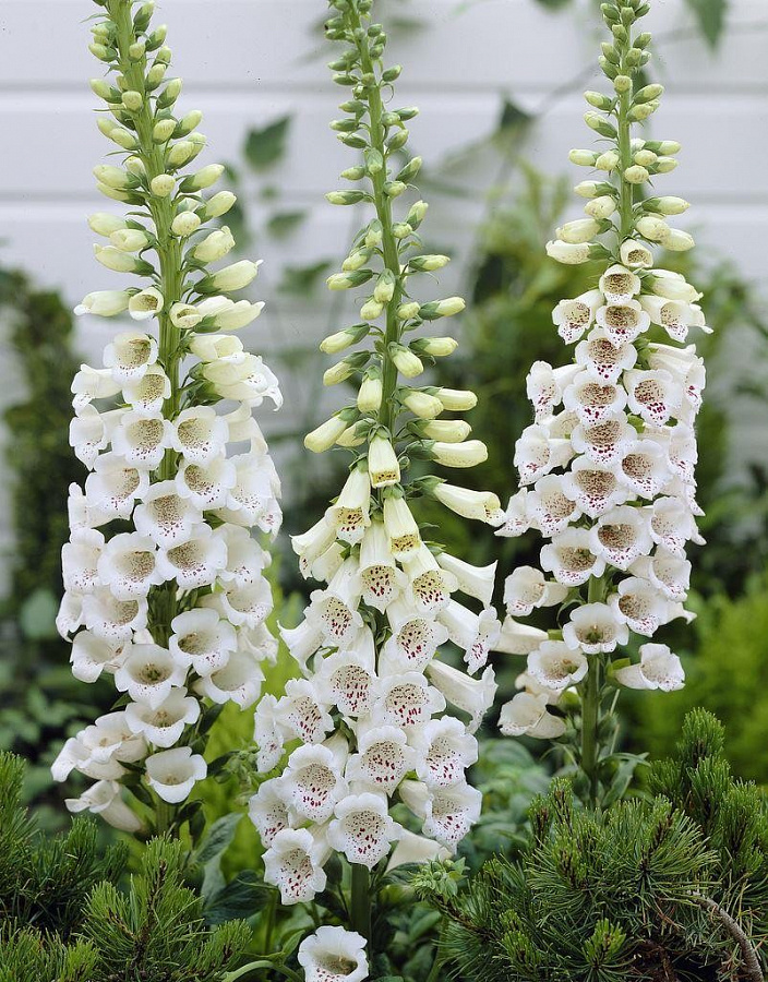 Рассада наперстянки Альба (Alba) вырастает около 100-150 см в высоту, а диаметр куста приблизительно 30 см. Имеет прочные стебли и зеленого окраса листья, которые, собранные в прикорневую розетку. Цветет в июне-августе белыми цветами. Цветочки имеют неправильную, колокольчатую форму. Достоинства наперстянки Альба: - продолжительное цветение - хорошо переносит перепады температур - зимоустойчива Семена наперстянки Альба лучше сажать в полутени на рыхлой, дренажной почве. Поливать нужно регулярно и умеренно. Очень эффектно смотрится в посадке вдоль бордюров особенно ранним летом.