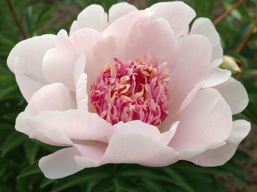 Пион молочноцветковый Ду Телл получил медаль от американского сообщества, и его семена широко используются в селекции. Порадовать своим эффектным цветением может уже в конце мая. Прекрасно смотрится в летних букетах.
