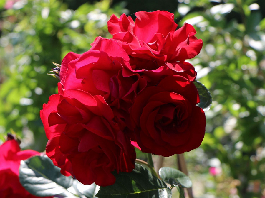 Саженцы розы парковой Сантана (Santana) относятся к сортам, лишенным аромата, что, полностью компенсируется их невероятной красотой, за которую их так любят цветоводы и ландшафтные дизайнеры. Прекрасные цветы радуют в любой стадии цветения, имеют насыщенный кроваво-красный цвет, устойчиво держатся на цветоносах во время дождя и долго сохраняют привлекательный вид. Интересное отличие этого сорта в том, что кисти с 3-7 цветками появляются не только на верхних побегах, а могут покрывать весь куст с самого низа. Обильное цветение благодаря силе куста и устойчивости к болезням будет радовать до самых морозов.