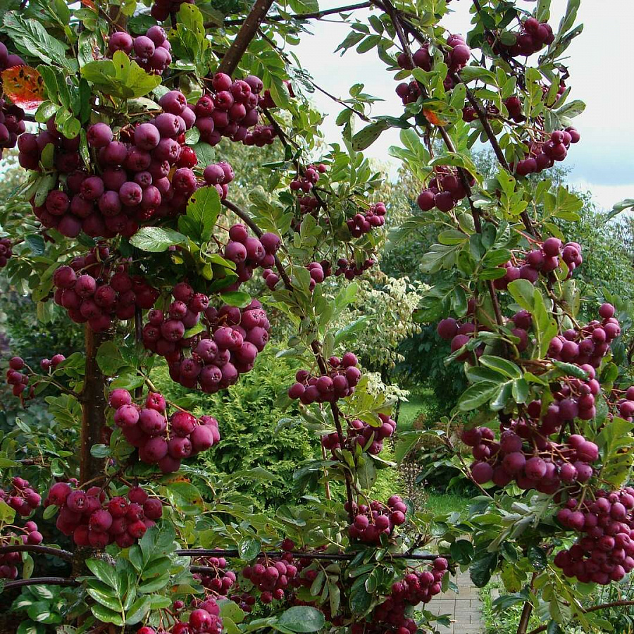 Саженцы рябины обыкновенной Гранатная любят дерново-слабоподзолистые суглинки, отзывчивы на органические удобрения. Сорт зимостоек, свето- и влаголюбив, но застоя воды не выносит. Для придание дереву более декоративной формы рекомендуют формировать его в кустовидной или разреженно-ярусной форме, а также регулярно снижать до трех метров в высоту. Цветки рябины обыкновенной Гранатная мелкие, белые, собраны в крупные щитковидные соцветия. Плоды шаровидные, бордово-гранатовой окраски, кисло-сладкие, чуть терпкие, без горечи, массой до 1,6 граммов. Пригодны для приготовления варенья.