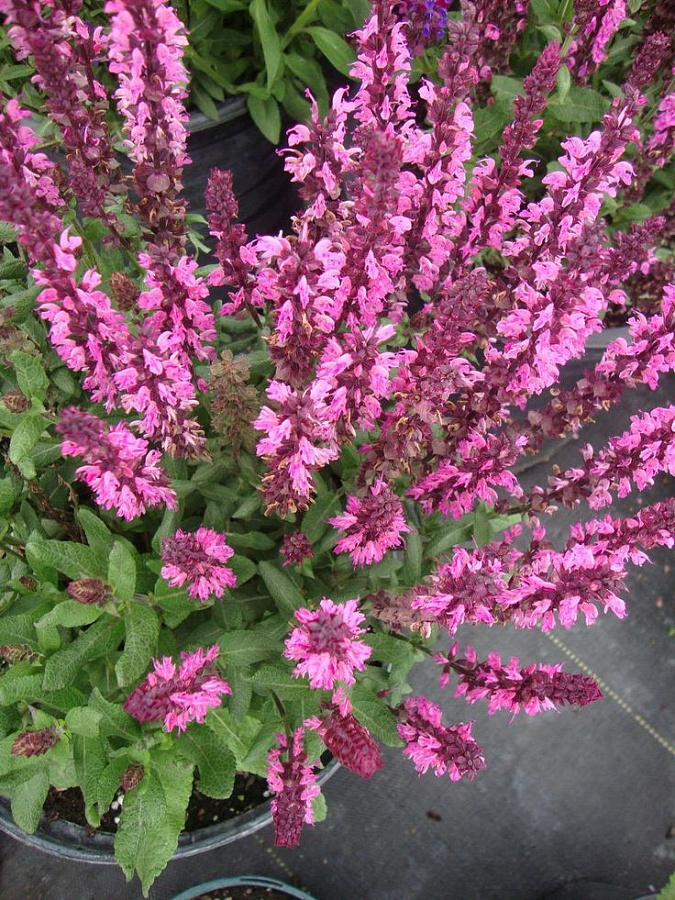 Саженцы Шалфея дубравного Нью Дименсион Роуз (New Dimension Rose Salvia nemorosa) высаживают в дренированную плодородную почву на солнечных участках. Это важные условия активного цветения, в остальном Шалфей не привередлив. Ярко-розовые колосообразные соцветия расцветают в июне и активно цветут до сентября. Средняя высота кустиков — полметра, они хорошо разветвлены. Многолетнее растение приспособлено к зимовке под открытым небом, хорошо переносит засуху. Зацветает в год посадки. Шалфей применяется в ландшафтном дизайне, а также медицине и кулинарии.