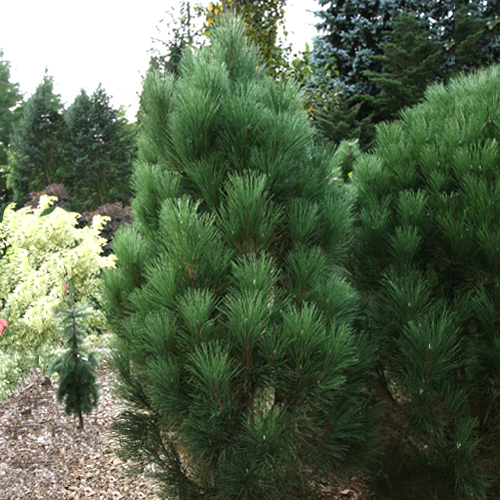 Саженцы сосны чёрной, дикого горного растения, в естественных условиях достигающего высоты 40 метров, хорошо приживаются в городе. Медленный рост молодых сосен помогает создавать прекрасные бонсаи. Жёлтые смолистые шишки, появляющиеся в конце апреля, необычно выглядят на фоне густой тёмно-зелёной хвои, широкой пирамидальной кроны и ствола насыщенного чёрного цвета. Особенности ухода: