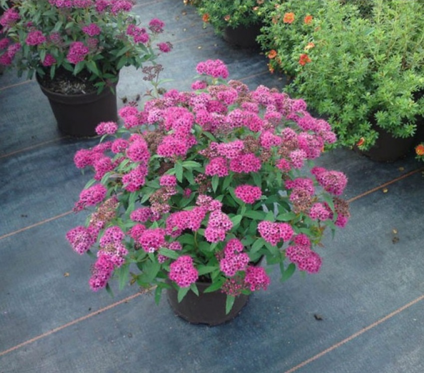 Саженцы японской спиреи Неон Флеш (Neon Flash) порадуют невероятным цветением, которое повторяется дважды за сезон. В начале лета и в сентябре кустарник покрывается многочисленными щитковидными соцветиями. Это удивительное растение широко применяется в ландшафтном дизайне. Характерные особенности крупномера: листва – молодые красноватые листья постепенно зеленеют, а к осени становятся темно-бордовыми; цветы – мелкие, многочисленные, лилово-красные; форма кустарника – шаровидная (корректируется стрижкой). Для посадки саженцев спиреи Неон Флеш выбирайте плодородную почву.