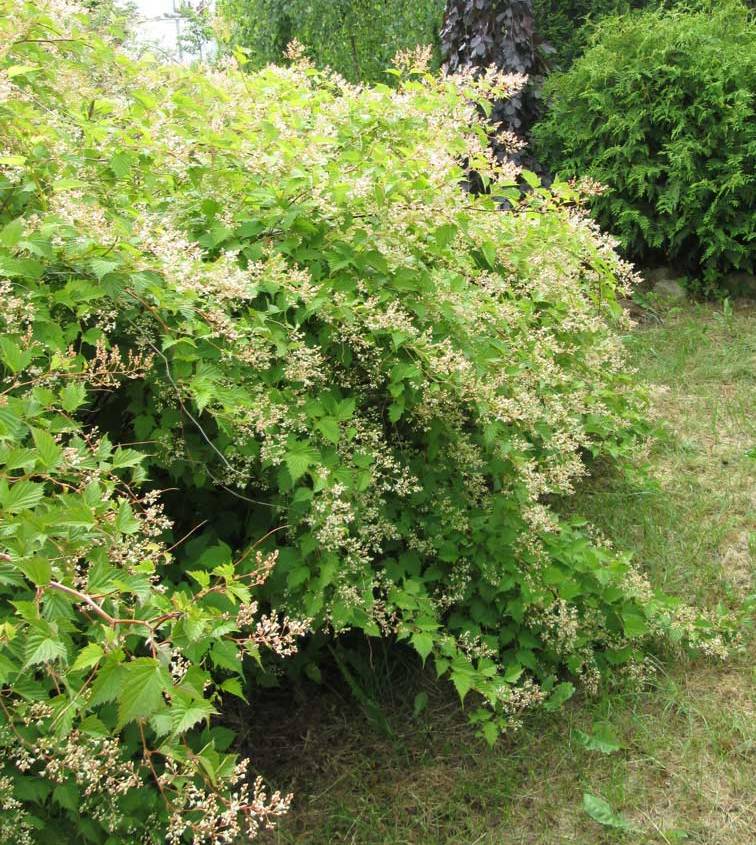 Поверхность самого листа выглядит морщинистой из-за глубоко вдавленных жилок. Осенью окраска разнообразна: от стандартных желтых до пурпурных и коричневых тонов. Мелкие белые цветочки собраны в метельчатые соцветия. Крупномеры позволят ощутить всю декоративность стефанандры Танаки уже сразу после посадки.