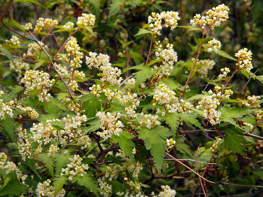 Саженцы стефанандры Танаки подарят саду высокорослый раскидистый кустарник с изящными листьями и воздушной кроной. Именно форма листьев и составляет основную декоративность кустарника. Основание листочка сердцевидное, а конец сильно заостренный, края крупнозубчатые.