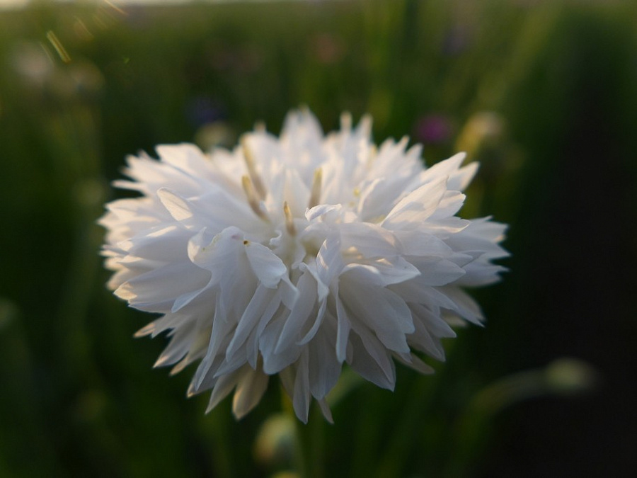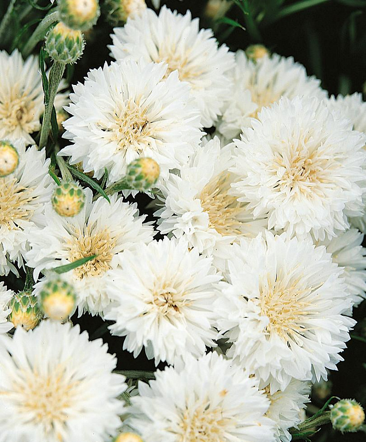 Семена василька «Синий Вайт бол» (White ball) высеваются в открытую почву в конце апреля. Растение не переносит пересадки, поэтому место сразу выбирают постоянное. Для семян василька «Синий Вайт бол» выделяют солнечные или слегка затененные участки. К составу почвы растение неприхотливо. В засушливое время нуждается в обильном поливе. Рассада василька «Синий Вайт бол» быстро разрастается. Высота взрослых цветоносов может достигать 90 см. Цветение длительное и продолжается с июня до середины осени. Цветы окрашены в белоснежный цвет. Растение используют для создания клумб, рабаток и на срез.