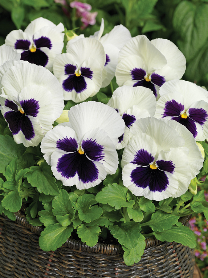 Виола крупноцветковая дельта вайт виз блотч - это удивительное растение с черно-белыми цветками, которые привлекают внимание своей изысканной окраской. Сорт delta white with blotch порадует вас своими крупными цветками размером 8-10 см, которые расцветают в июне и июле, создавая неповторимую атмосферу в вашем саду. Высота растения составляет 10-15 см, что делает его идеальным для групповых посадок.