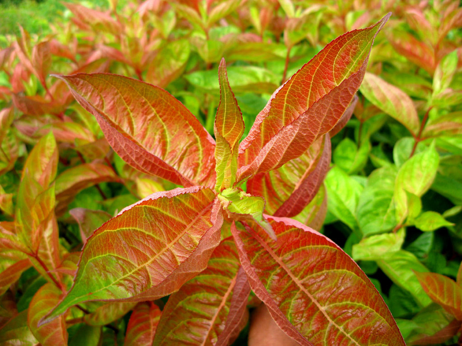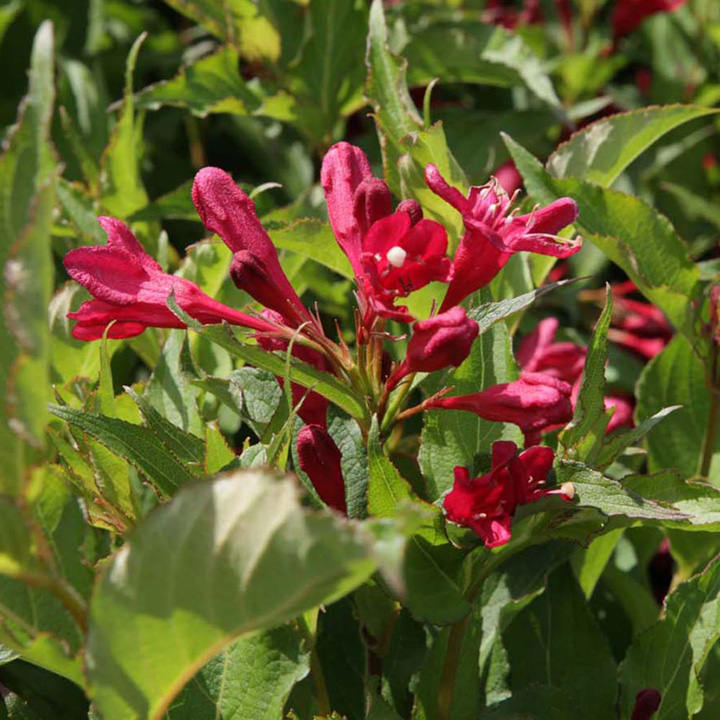 Саженцы Вейгелы цветущей Вингс оф Файер (Wings of Fire, Weigela florida) обладают определенно удивительной расцветкой листвы – по весне медно-бронзовую, а в летний сезон и в осеннее время багрово-алую, что делает его просто обворожительным. Листва частая, широкораскидистая. Это куст достаточно высокий с округленной короной, в вышину и в ширину, как правило, может достигать до 0,9 м., к десяти годам, по некоторым случаям- 1 -1,2 м.