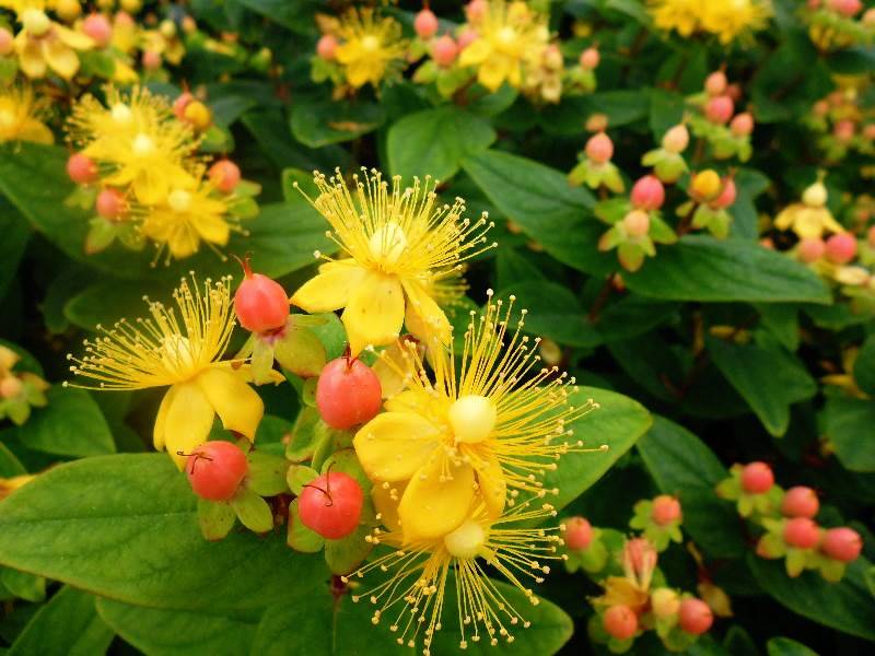 Саженцы Зверобоя чашечкового (Hypericum inodorum) прекрасно подойдут для оригинального оформления дачного участка или оформления парковых зон и скверов. Это отличное решение для высадки декоративных растений на склонах, а также создания живой изгороди и декоративных бордюров. Роскошный многолетник будет радовать обильным цветением крупных желтых бутонов с июля до середины осени. Высота куста достигает 60 сантиметров, в стороны он расползается на 80-100 сантиметров. Рекомендуется располагать растение на солнечных участках, обеспечив хороший дренаж почвы и регулярный умеренный полив.